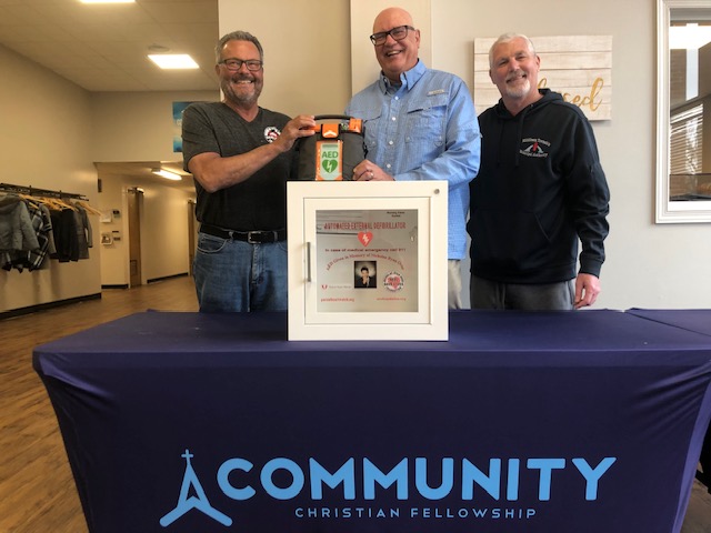 AED donation to Crossroads Wine Shop in memory of David Hopcraft